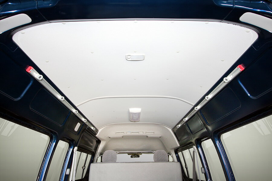※標準バンDX車に取付る際は、フロント部分の天井内張りと干渉するため、ガレージバーを多少カットする必要があります。