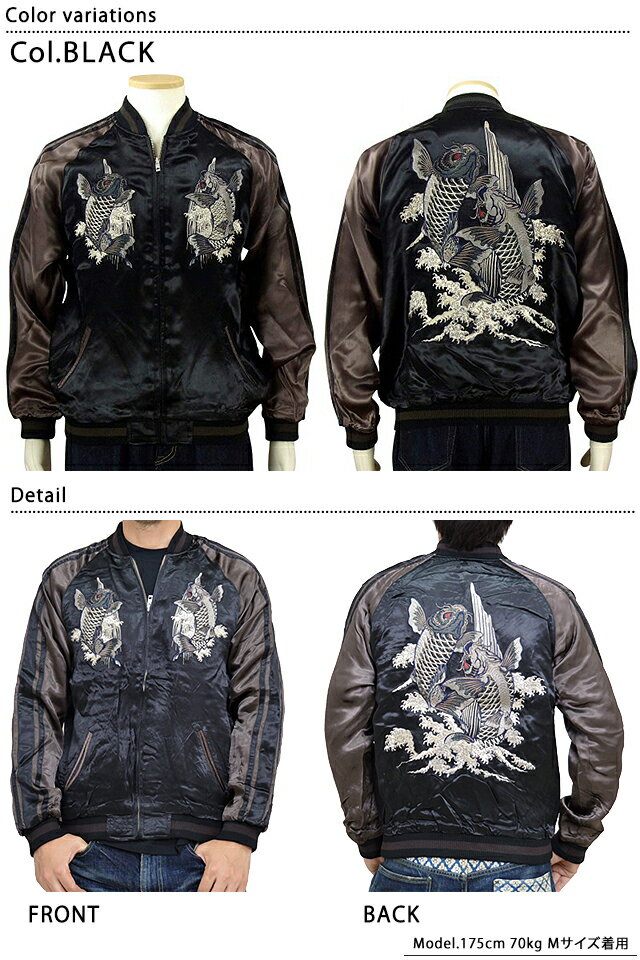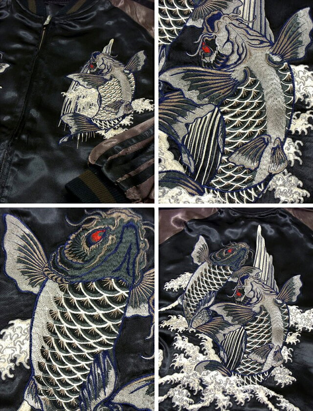 滝に鯉柄刺繍リバーシブルスカジャン◆satori/さとりSAT-M00903Detail和のテイストをロックにアレンジすることで独特の世界観を展開しているブランド、satoriから「滝に鯉柄刺繍リバーシブルスカジャン(GSJR-011)」のご紹介です。