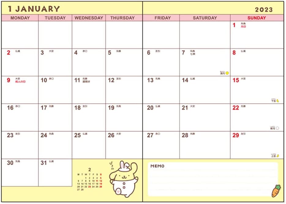 月ごとにもメモページが付いています(2023年1月~2023年12月) メール便にて190円でお送りできます メール便に問い合わせ番号はありません (日時指定ご希望のお客様は宅配便送料別での配送となります)