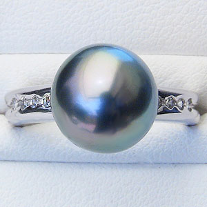 真珠明細 ■タヒチ黒蝶真珠 ■大きさ:10mm ■色:グリーン系 ■形:ラウンド 真珠のグレード ■照り:AAA 巻き:AAA キズ:AA 脇石 ■ダイヤモンド 形:ラウンド 個数:8石 0.15ct 地金 ■pt900 プラチナ リングサイズ ■8号-15号※その他のサイズはお問い合わせください。